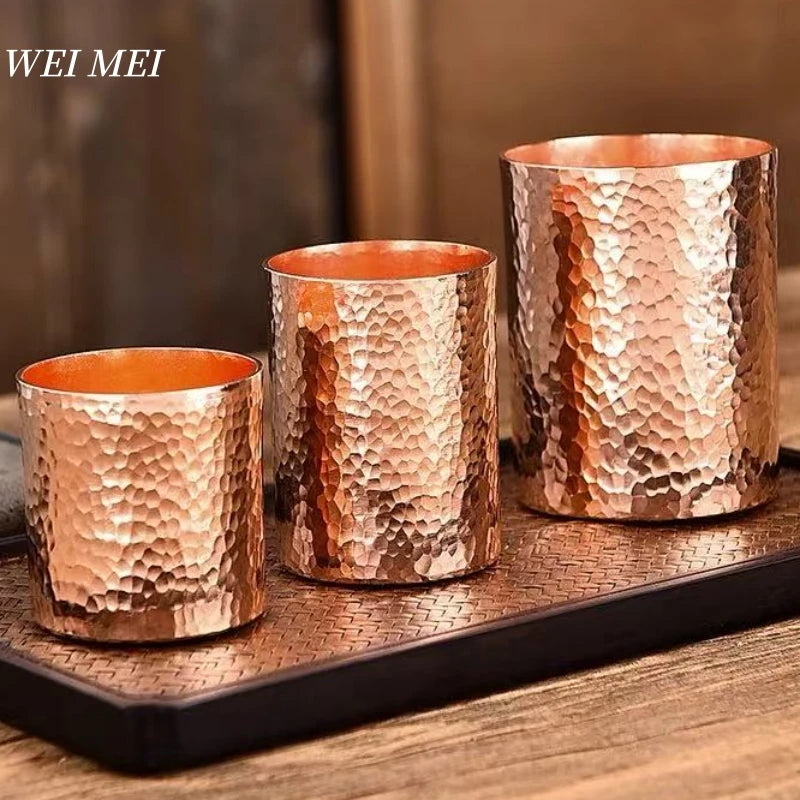 Vintage Pure Copper Glass – Handcrafted Hammered Texture, Multi-Size Tableware Mug